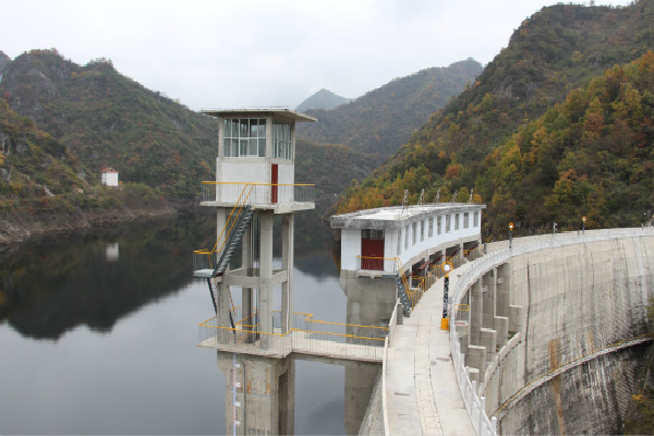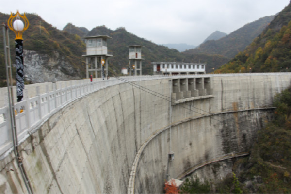 該工程位于勉縣二道河鄉(xiāng)褒河支流沙溝河中段,壩頂寬4.0m、底寬16m、壩高55m、壩頂弧長220.78m,為變?nèi)碾p曲拱壩。該壩壩體結(jié)構(gòu)復(fù)雜,此雙曲拱壩結(jié)構(gòu)為陜西第一座,技術(shù)含量較高。該工程于1998年9月1日開工,2003年1月31日竣工。